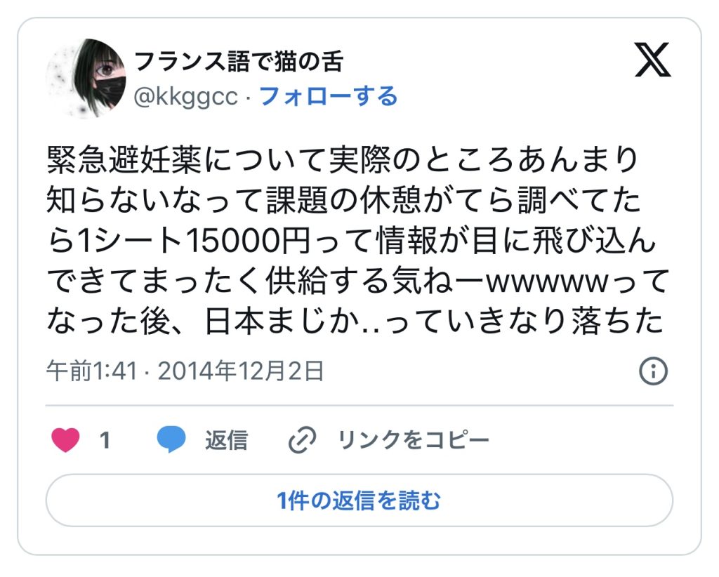 緊急避妊薬のこと フォローしている方から たくさんの意見や情報を得る 緊急避妊薬が気軽に入手できたら 安易な無責任なセックスが増えるのでは? と、最初思っていましたが 既に今、そんな状況なのだと気づく