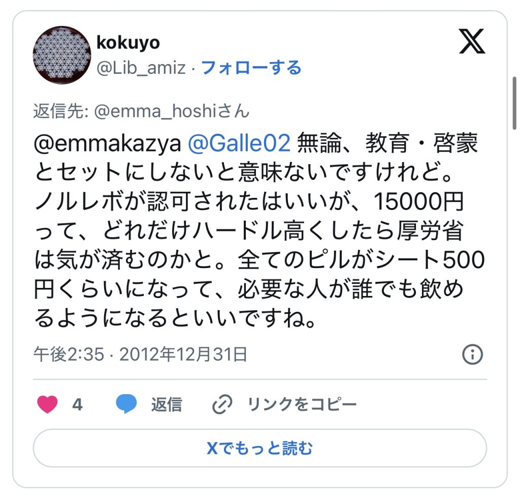 【タイトル】ノルレボ市販薬化を求める声、声、声。(その4)