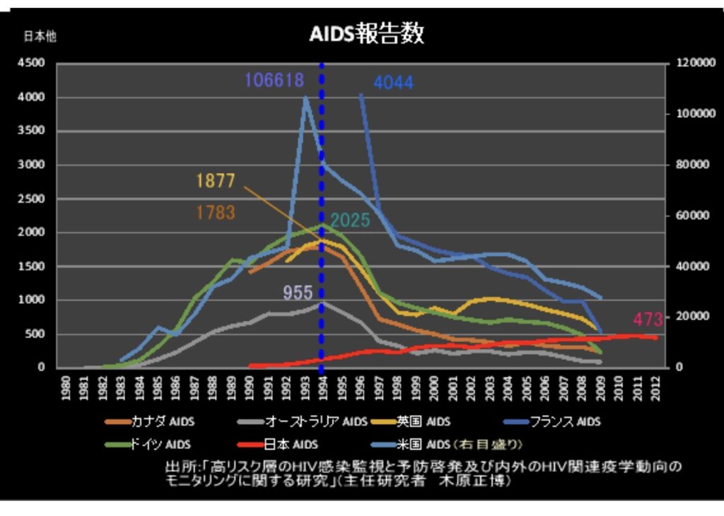 この傾向が継続すれば、日本のHIV感染者は欧米を凌ぐ日が来る。