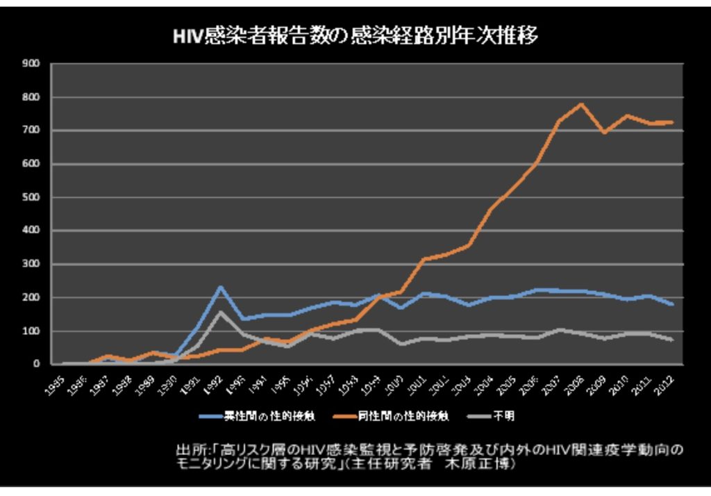 現在の日本でも、HIV/エイズ感染拡大に男性同性愛者の感染が大きく寄与しています。
