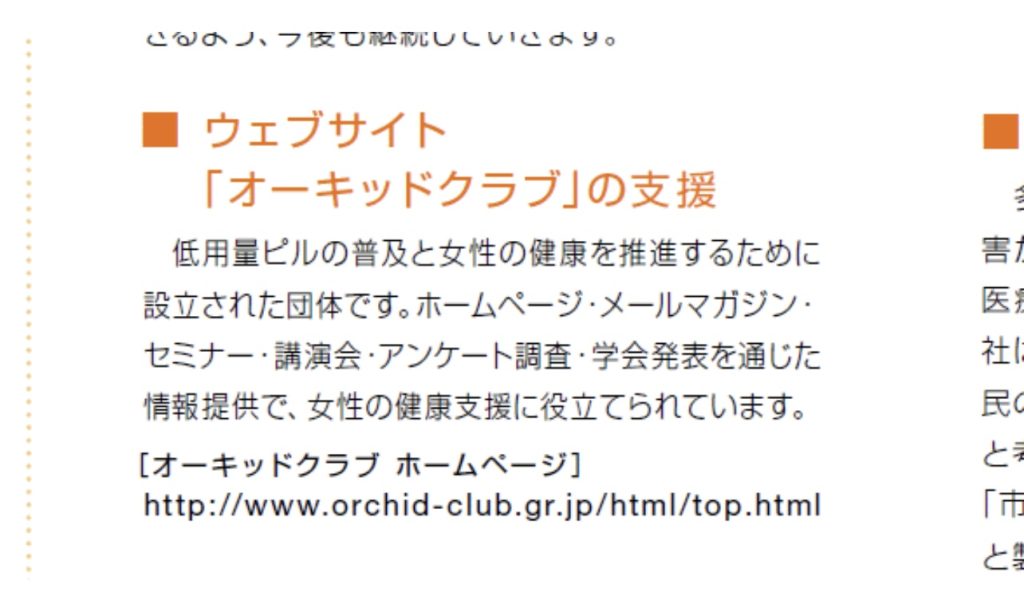 「ピルや避妊に関する総合サイト」と銘打つオーキッドクラブのサイトが現れるのは、