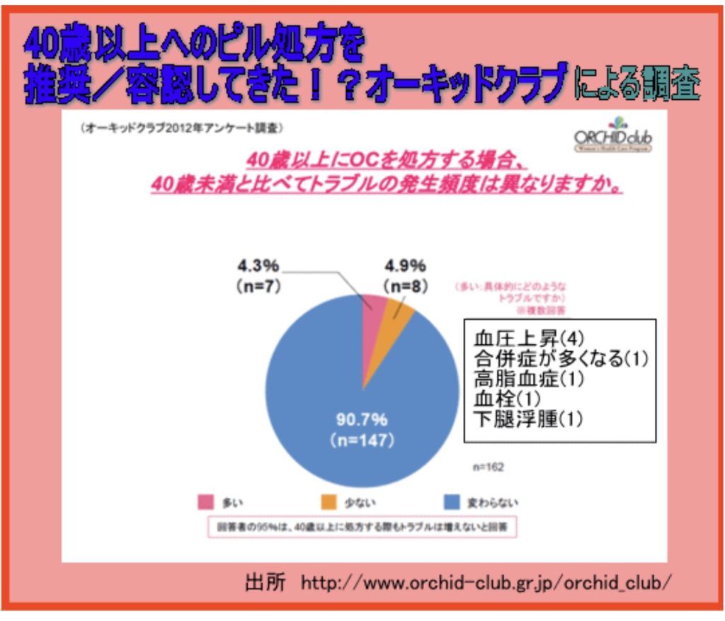 性と健康を考える女性専門家の会会長の40歳代女性への回答。http://t.co/DOgkGpkT2j ピル経験のない40歳以上の女性がピルを服用すると、とんでもないハイリスクになるのを知らないのだろうか?