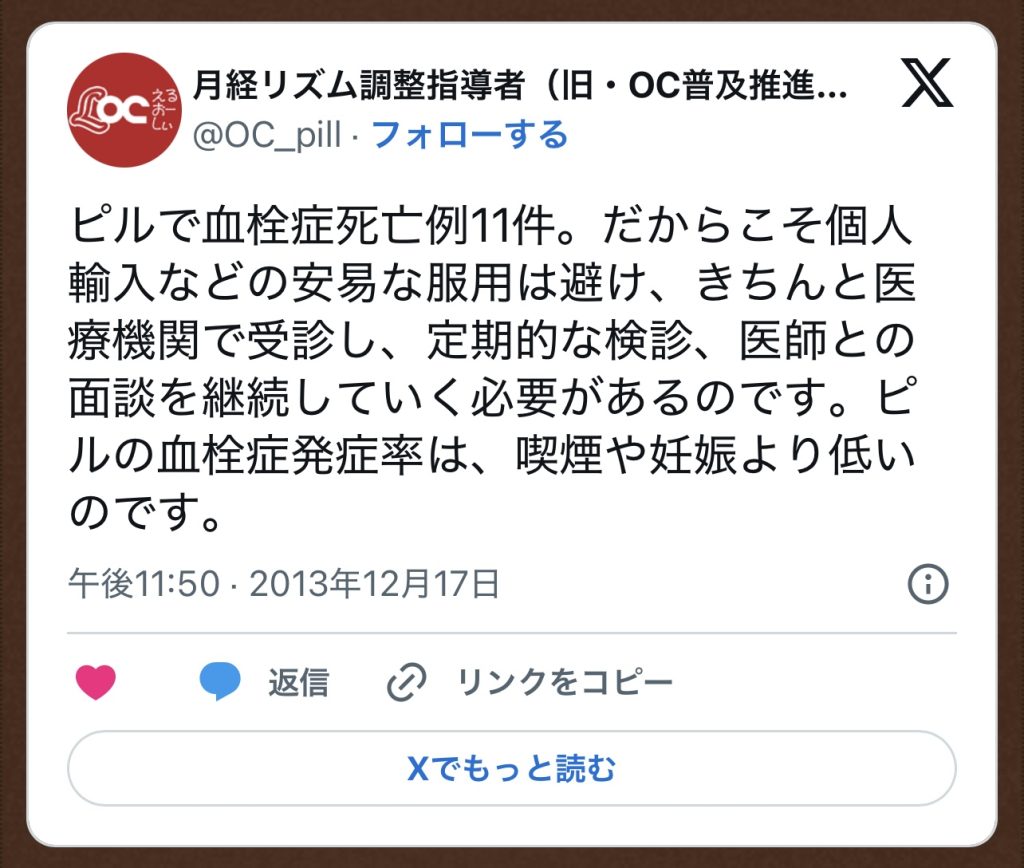 • sunamandala 「ピルを使わなくても10万人あたり年5人の頻度で起きる」 2013/12/17