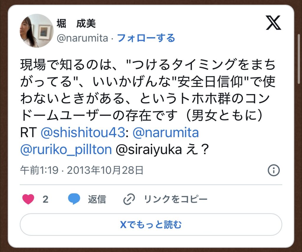 http://t.co/RTMkbl5b この情報の真偽を無視して、「やはりコンドームが大事ですね」と応じる人がピル推進。
