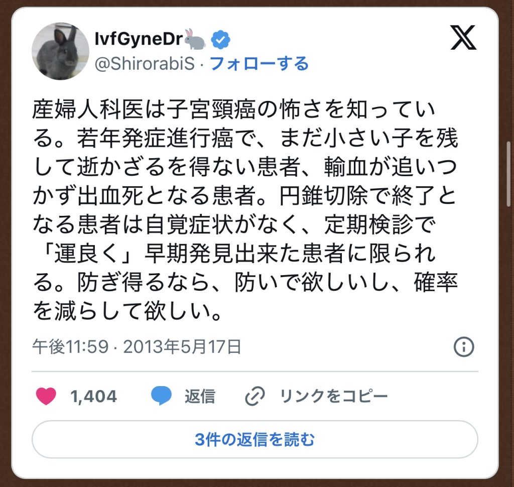 よろしければ、子宮頸がんのタグをクリックしてお読みください。