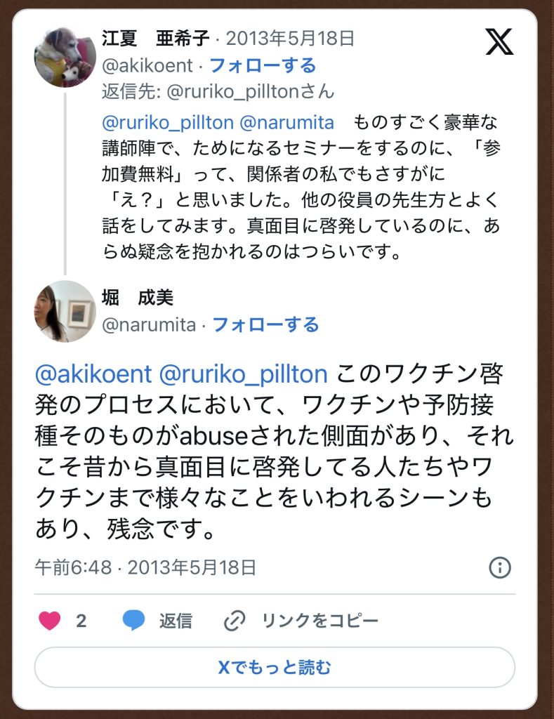 それらの言説が「ワクチンでお金儲けしたい産婦人科病院からのメッセージ」になっていることに気づかないのでしょうか?