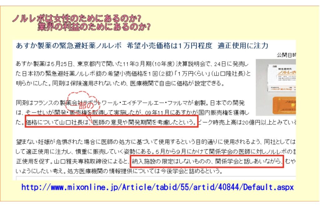 ノルレボの価格は女性の手に届きにくいものにするために、