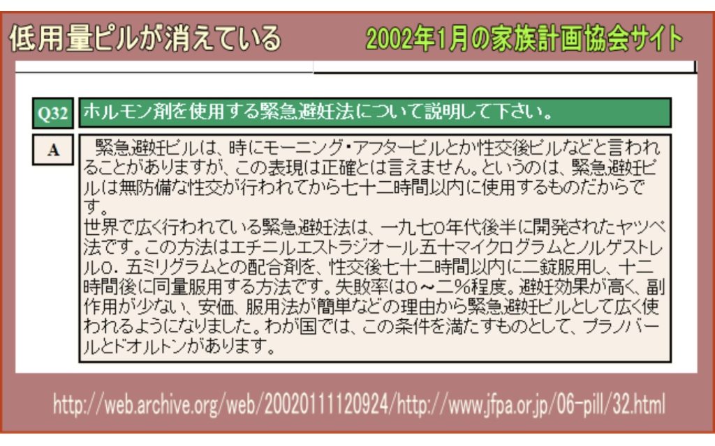 この北村論文より10年ほど前、家族計画協会のサイトには以下のような記述が見られました。