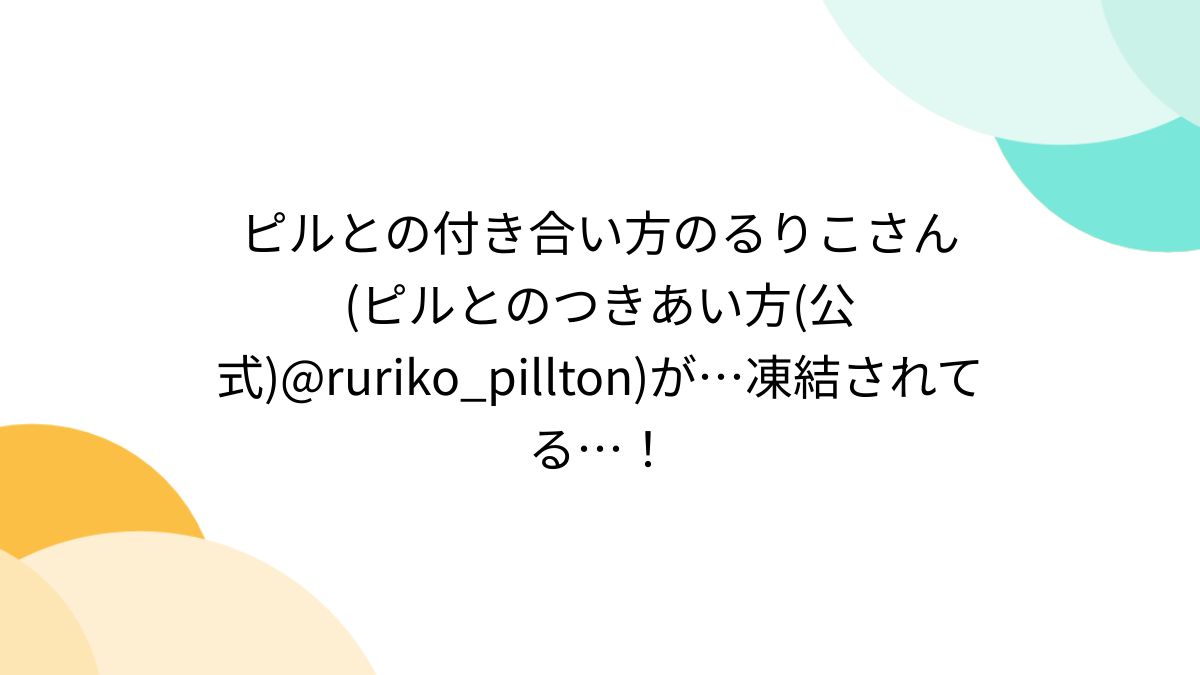ピルとの付き合い方のるりこさん(ピルとのつきあい方(公式)@ruriko_pillton)が…凍結されてる…!