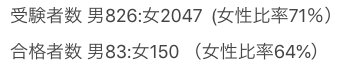 左画像は本文中の東京藝大の受験者合格者男女比。 右は、その他美大3校。 ムサビ、受験者より合格者のほうが女性率高いw 諸岡 亜侑未 東京医科大学のニュースをみて、どうしても「藝大は?」と考えてしまい、いてもたってもいられなくなって書いてしまいました。 note.mu/mor0_0ka/n/n16… pic.twitter.com/VITIrhTBwt