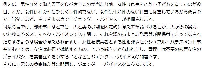 」 全く同感ですな。『よいジェンダーバイアス』とか『許容範囲のジェンダーバイアス』なんてないんですから