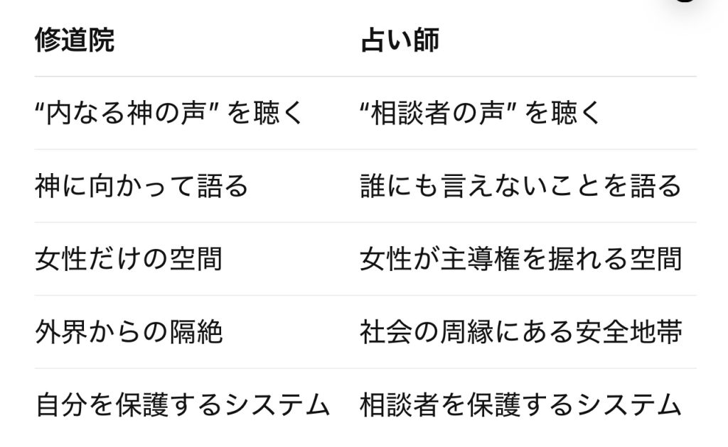 ● 修道院と占い師:二つの避難所の構造は実は同じ